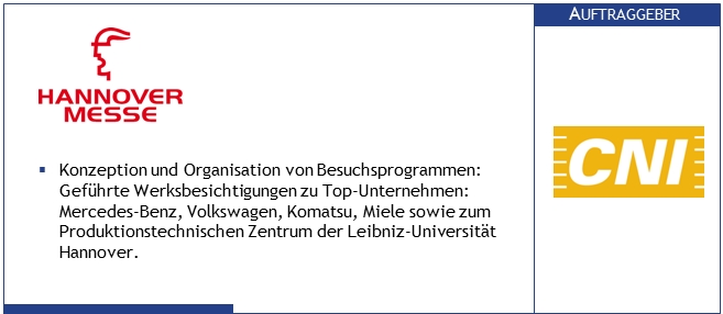 organisiert internationale Veranstaltungen und Messeauftritte und betreut